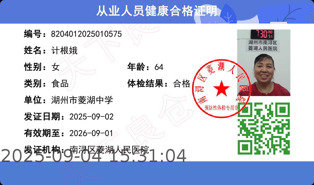 [健康证]菱湖中学--计根娥